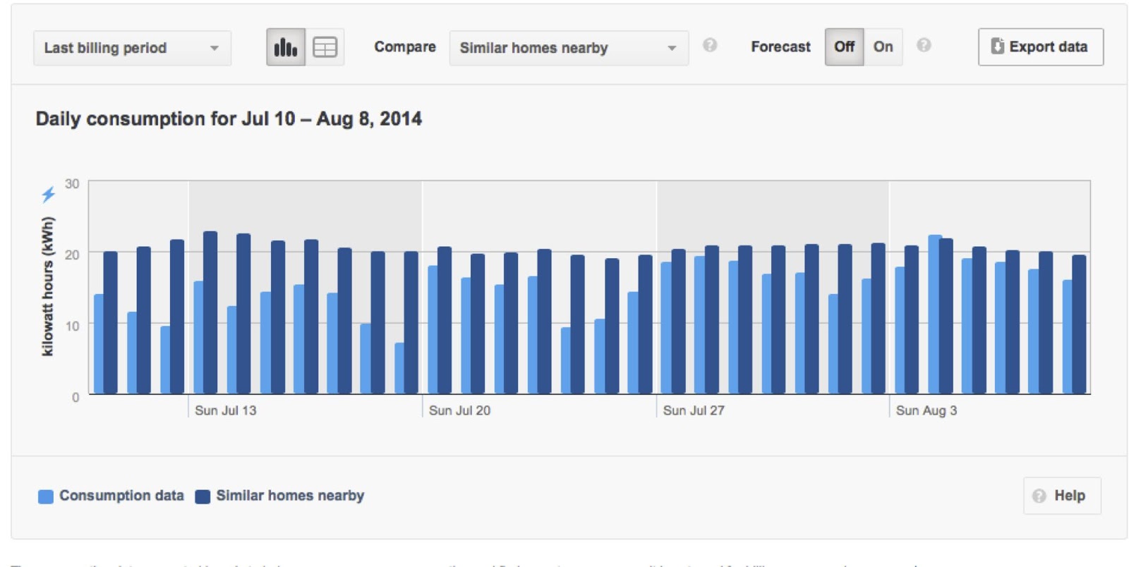 It becomes a bit of game to figure out where you can save on your bill. I especially like the graphs on their website – Here’s one that compares my household consumption to my neighbours!
